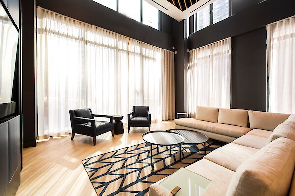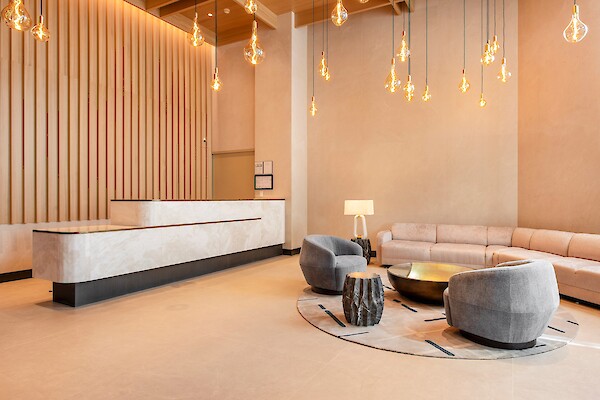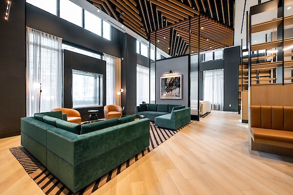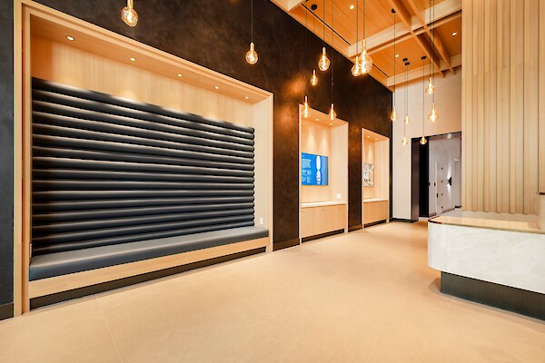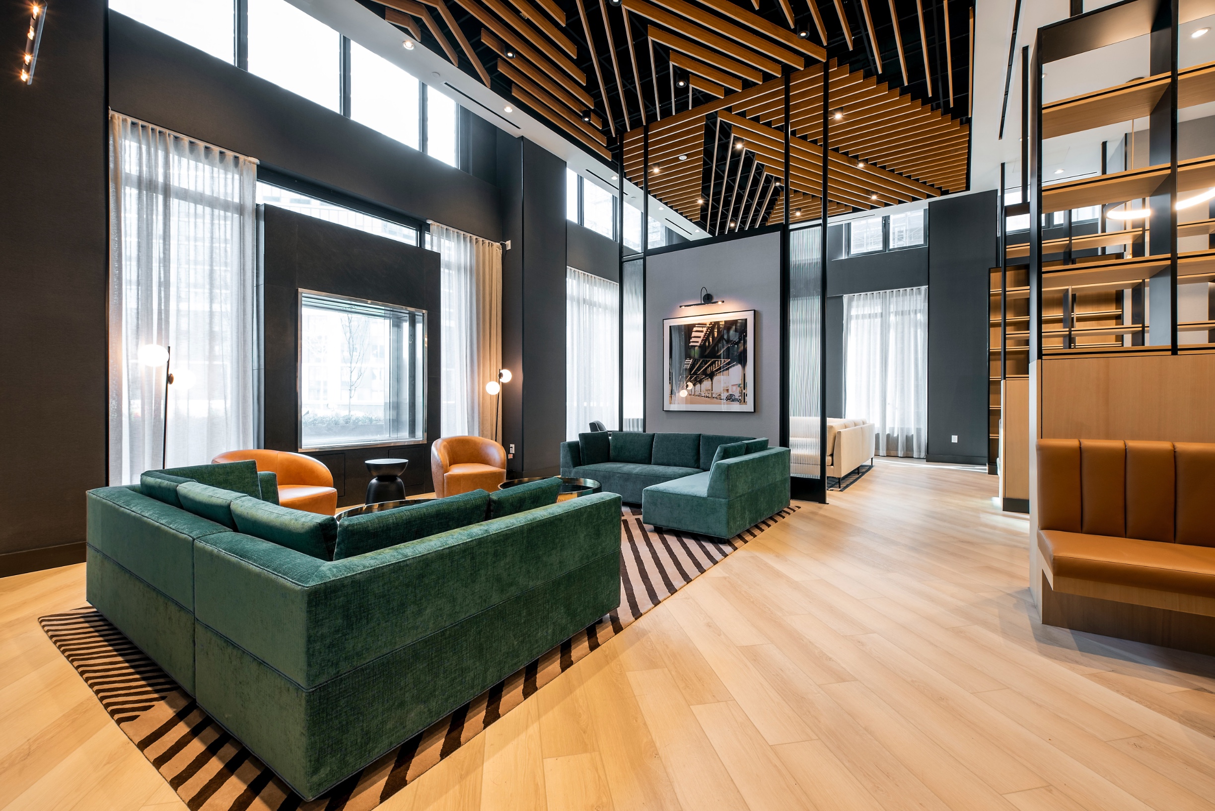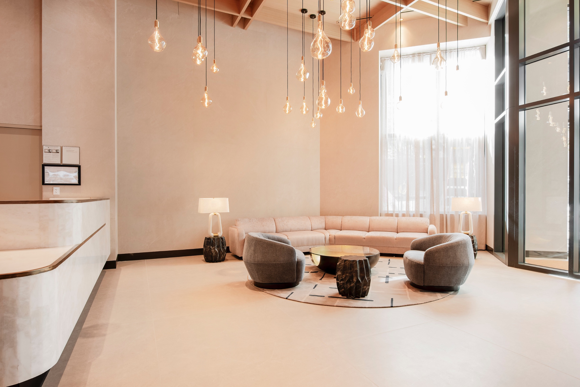 Elegantly appointed, the double-height lobby features refined finishes and artful lighting, welcoming residents into a world of calm sophistication. With a 24/7 concierge at your service, it is more than an entryway—it is a place to pause, reset, and step into the rhythm of effortless living.