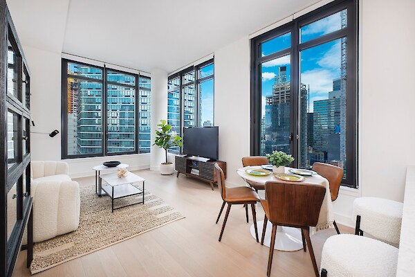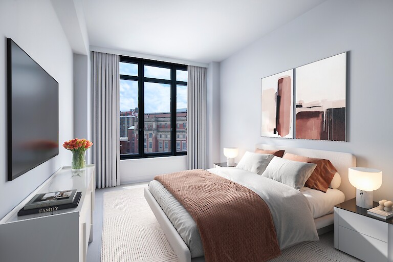 With sophisticated, condominium-level finishes, each residence is thoughtfully designed and crafted with care. The highest-quality materials, contemporary fixtures, state-of-the-art appliances, and custom cabinetry define the interiors. Filled with abundant light and air, the homes offer a serene, private retreat with expansive views across Long Island City, with select residences overlooking picturesque Court Square Park.